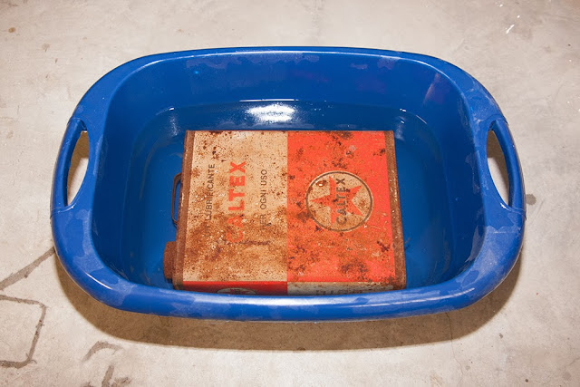 Then in a bowl big enough I put a solution of oxalic acid and water, one tablespoon per liter.
